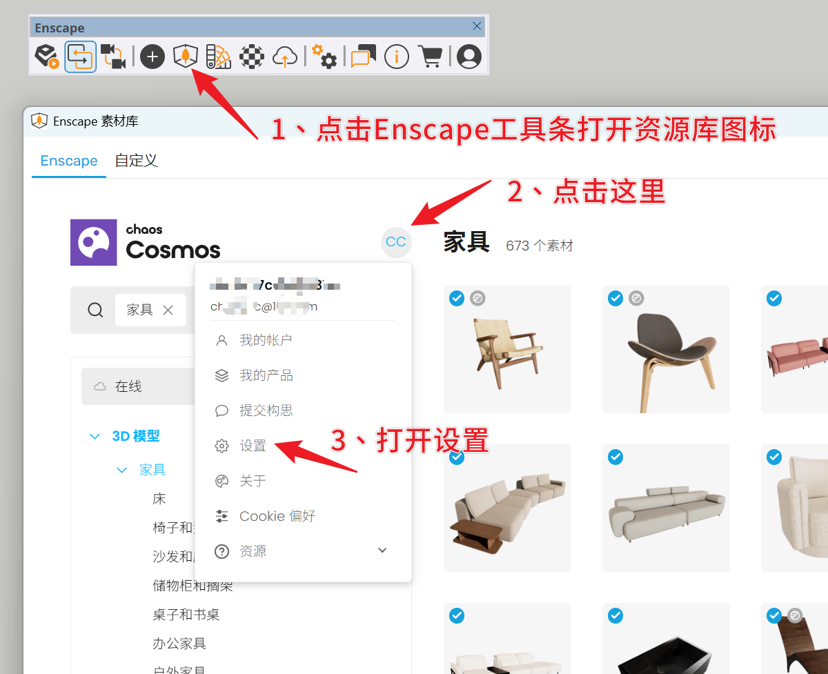 本套素材库是在 Enscape4.14 渲染器的 Cosmos 官方在线模型库中整体下载,下载日期为2025年12月22日。主要用于不能上网的电脑加载使用。文件比较大,请下载最新版即可,然后看下面的加载教程。