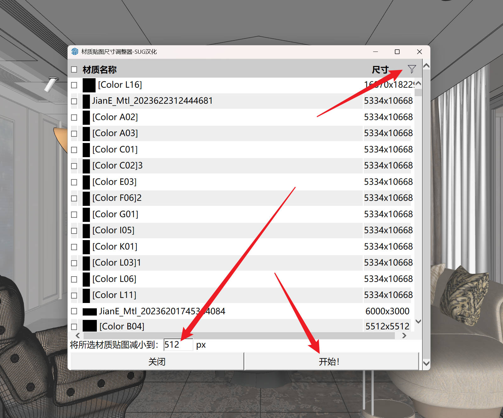 批量压缩贴图:自动扫描模型中所有材质,并统一调整贴图大小。